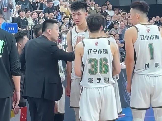 在比賽還剩3分48秒的時(shí)候,遼籃主教練楊鳴直接用全華班陣容練兵,也就意味著這場比賽就這樣了。