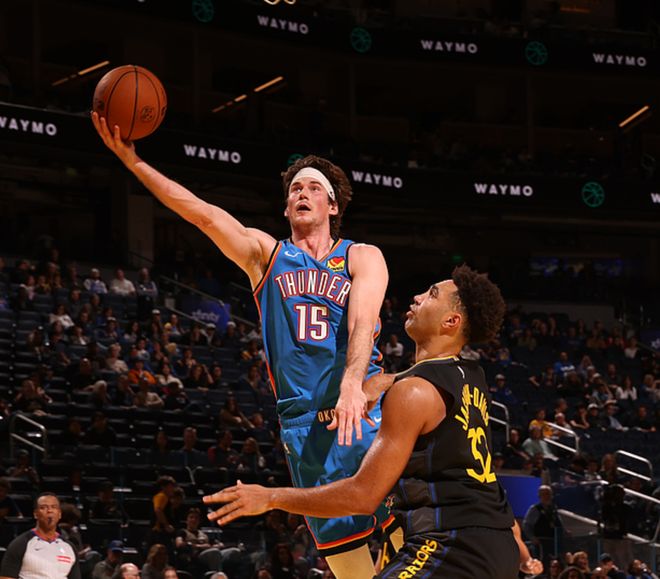 亞歷山大打了28分鐘,20中10得到30分1板7助,連續(xù)106場得分20+,創(chuàng)造近62年來NBA紀錄。切特打了26分鐘,8中5得到15分15板4助4帽,杰倫12分6板2助,卡爾森15分10板2助2斷,威金斯15分3板2助,米切爾11分2板6助2斷,多爾特11分3板。