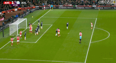 第48分鐘,加布里埃爾角球進(jìn)攻中破門,阿森納1-0!
