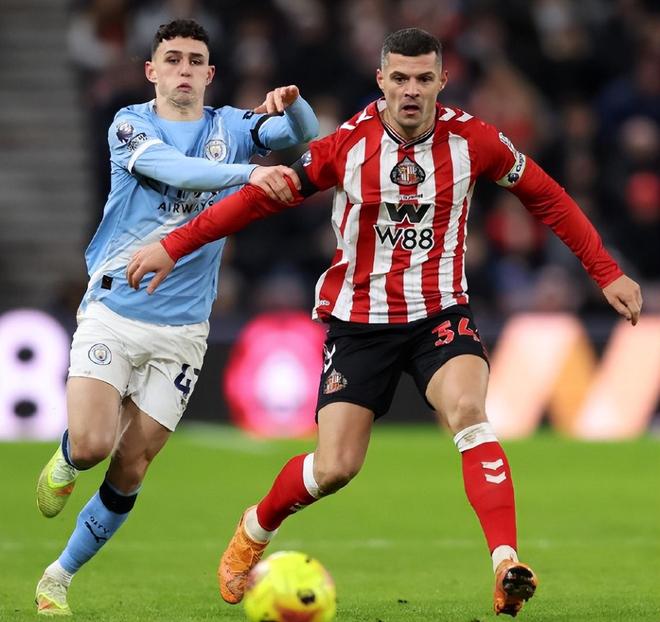上半場曼城掌控著場上節(jié)奏,不斷通過短傳滲透試圖撕開桑德蘭防線,第38分鐘,球隊右路連續(xù)配合后創(chuàng)造絕佳機(jī)會,哈蘭德禁區(qū)中路獲得直面門將的推射機(jī)會,卻因角度過正被對方門將輕松化解。而桑德蘭則憑借簡潔高效的反擊頻頻制造威脅,第20分鐘,布羅比接后場長傳后展現(xiàn)強(qiáng)悍身體素質(zhì),生吃扛翻曼城后衛(wèi)迪亞斯形成單刀,所幸門將多納魯馬反應(yīng)迅速,奮力將球撲出,才為曼城化解險情。第45+4分鐘,扎卡左肋送出精準(zhǔn)傳中,休姆中路頭球攻門稍稍高出橫梁,驚出曼城后防線一身冷汗。