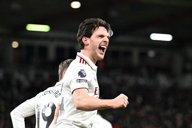 第54分鐘,賴斯接厄德高精準(zhǔn)橫傳,一腳貼地斬直竄死角,幫助阿森納實現(xiàn)反超;第71分鐘,他又機敏跟進(jìn),接薩卡倒三角回傳推射得手,將比分?jǐn)U大為3-1。兩記進(jìn)球,既有遠(yuǎn)射的精準(zhǔn)暴力,又有禁區(qū)內(nèi)的靈動嗅覺,完美展現(xiàn)了現(xiàn)代全能中場的特質(zhì)。